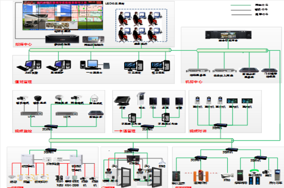 1、视频监控系统:作为整个安防系统的眼睛,它无处不在,根据环境特性采用如宽动态、红外、智能等拥有特殊性能的“眼睛”,与其他系统互相配合、